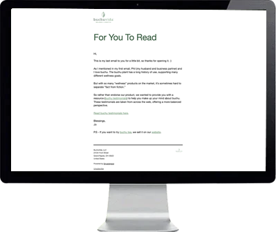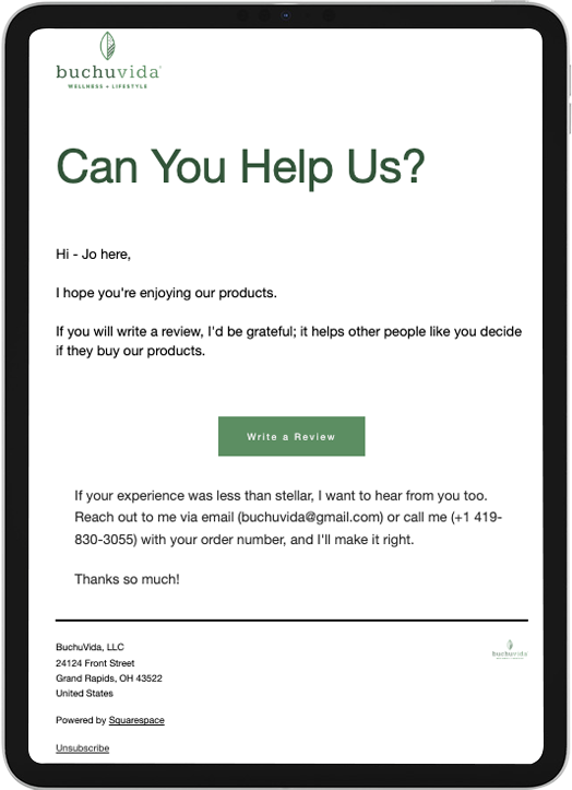 "Getting Steeped Content to make a sales sequence really helped reduce the number of tasks on my plate. I now no longer have to manually ask customers for reviews"