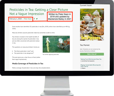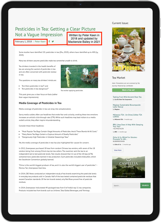"Mackenzie substantially improved a blog post, 'Pesticides in Tea: Getting a Clear Picture Not a Vague Impression.' Her educational article became the top-performing blog post on the Tea Journey website; it held the top position for months."