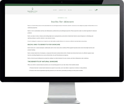 "Her list-style blog post, "BuchuVida For Skincare," was super customer-focused, and Mackenzie actively promoted my brand's products in a relevant way. You could tell she put herself in my shoes and my customers' shoes."