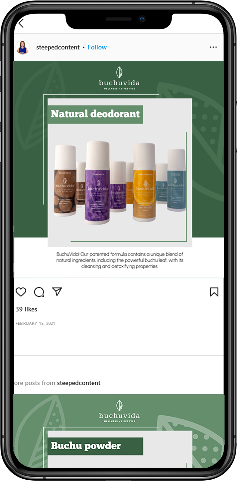 “The way she laid out the buchu logo leaf onto the Instagram posts with our products looks so professional and on brand.”